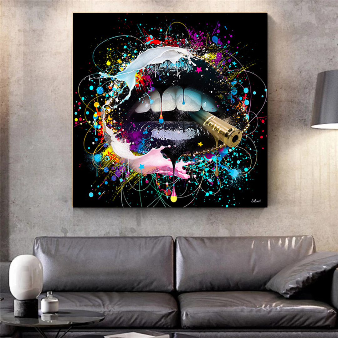 Introducing our exceptional Abstract Graffiti Lips with Bullet Canvas Wall Hanging Art, offering captivating Canvas Wall Art Posters that infuse life and personality into your space. Elevate your walls with: