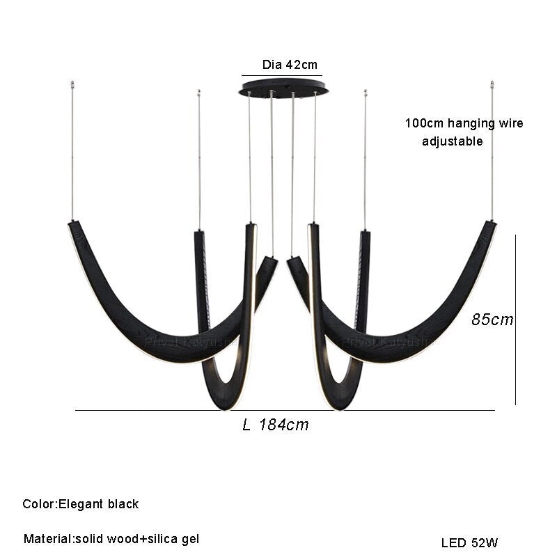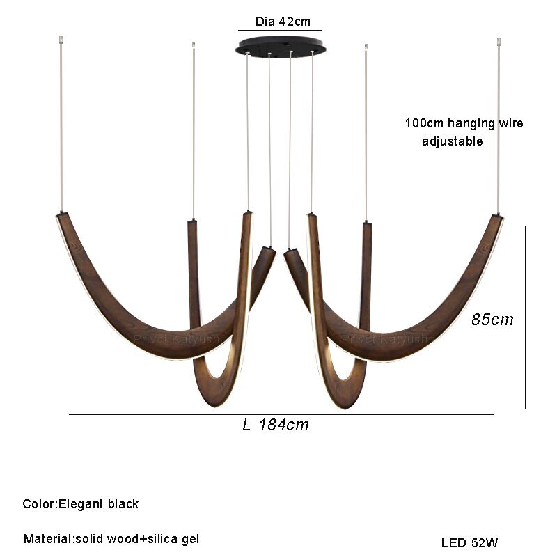 Solid Oak Wood Loops Chandelier - Handcrafted Beauty
