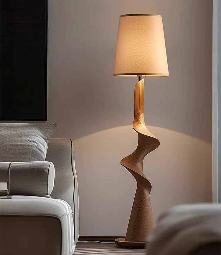 Curve Wood Floor Lamp – Sculptural Natural Wood Lighting