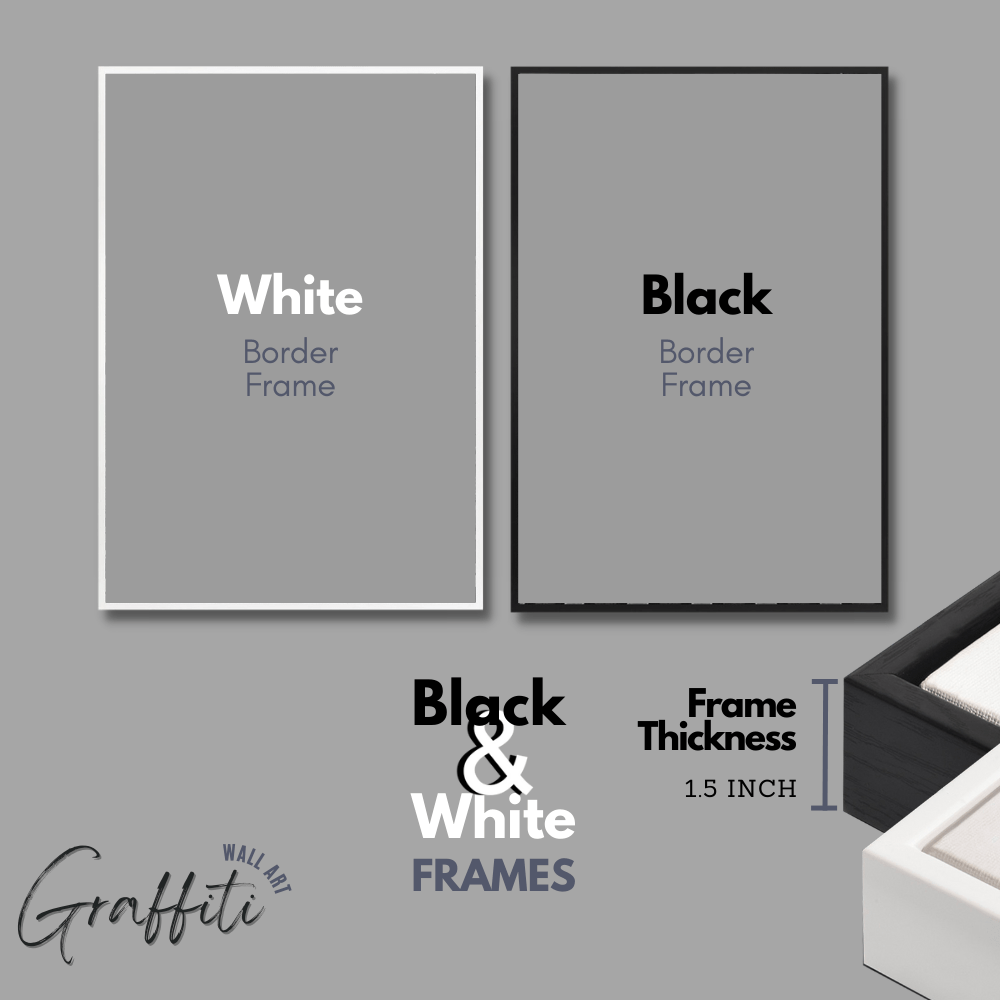 • Canvas Poster on Floating Black Border Frame: Aluminium 3cm thick border framed Canvas Poster. Modern touch for your decor.