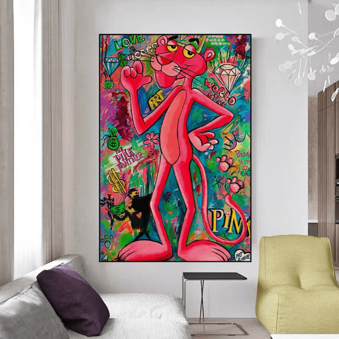 Introducing our exceptional Expressive Pink Panther Poster - Chic Decor, offering captivating Canvas Wall Art Posters that infuse life and personality into your space. Elevate your walls with: