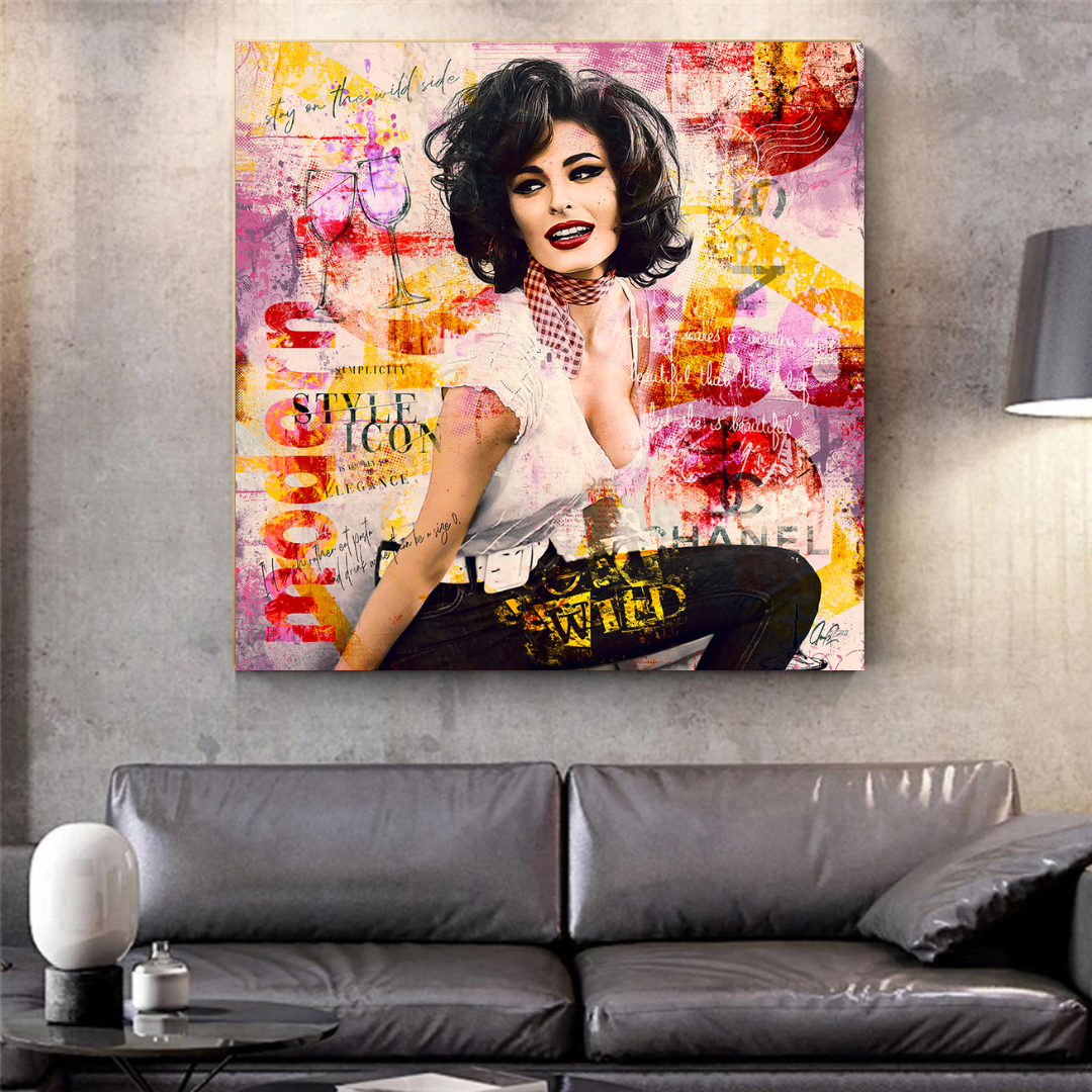 Verwandeln Sie Ihren Raum in eine Kunstgalerie mit dem Wandbild auf Leinwand „Get Wild“ von Sophia Loren , wo jedes Stück Tiefe und Charme verleiht.