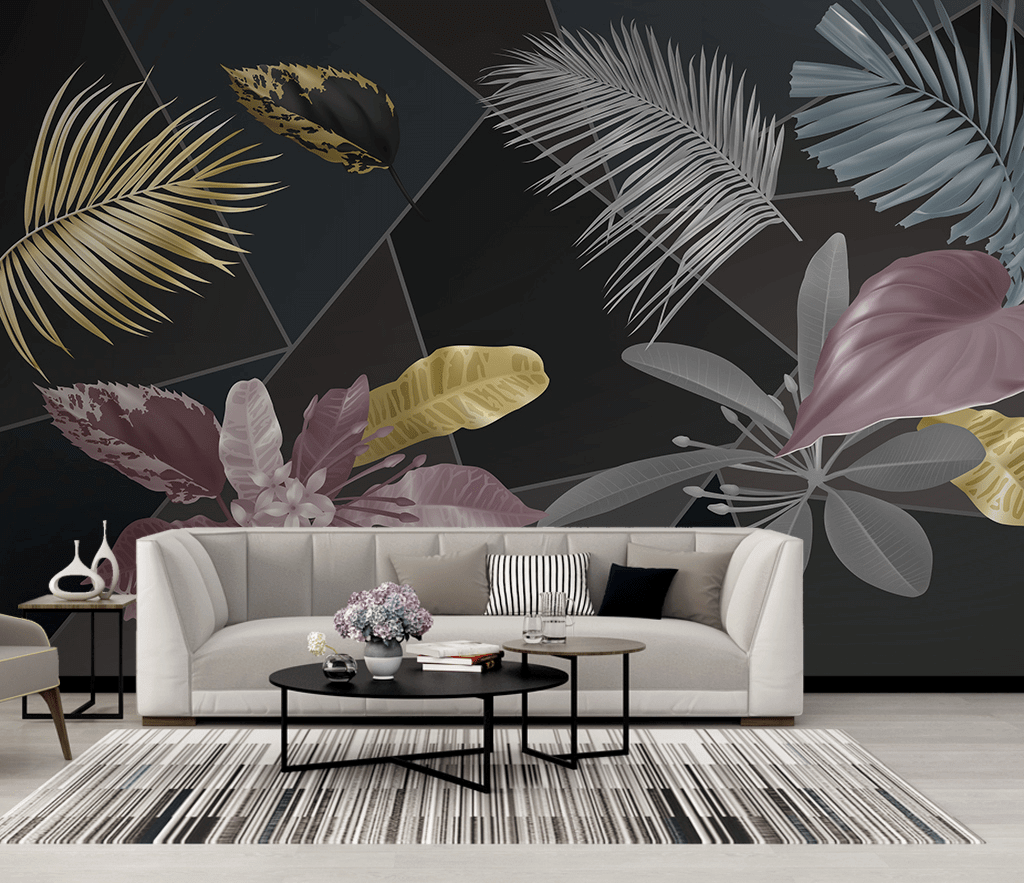 ¿Por qué elegir los murales de papel tapiz con patrón de hojas negras - Diseño premium?
