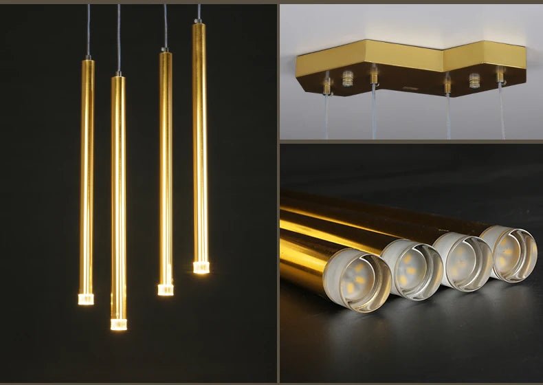 Χρυσοί Σωλήνες LED Μινιμαλιστικό Πολύφωτο - Ηλεκτροπλασμένο