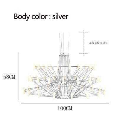 Introducing the Designer Coppelia LED Chandelier by GrafffitiWallArts Fancy Lights, a gorgeous addition to any space in need of elegance and sophistication. Available in a variety of styles, including White (Diameter 80cm x Height 35cm, Diameter 100cm x Height 58cm), Silver (Diameter 80cm x Height 35cm, Diameter 100cm x Height 58cm), Rose gold (Diameter 80cm x Height 35cm, Diameter 100cm x Height 58cm), and Black (Diameter 80cm x Height 35cm, Diameter 100cm x Height 58cm), this chandelier is designed to captivate. Its unique selling point lies in its sleek and modern design, combining LED lighting with a cascading effect, transforming any room into a luxurious haven. Add a touch of sophistication to your space with the Designer Coppelia LED Chandelier.