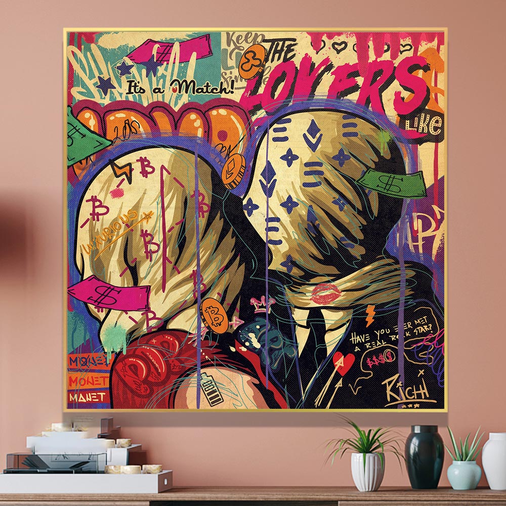 Introducing our exceptional Graffiti Pop Wall Art Lovers Kiss Canvas Wall Art, offering captivating Canvas Wall Art Posters that infuse life and personality into your space. Elevate your walls with:
