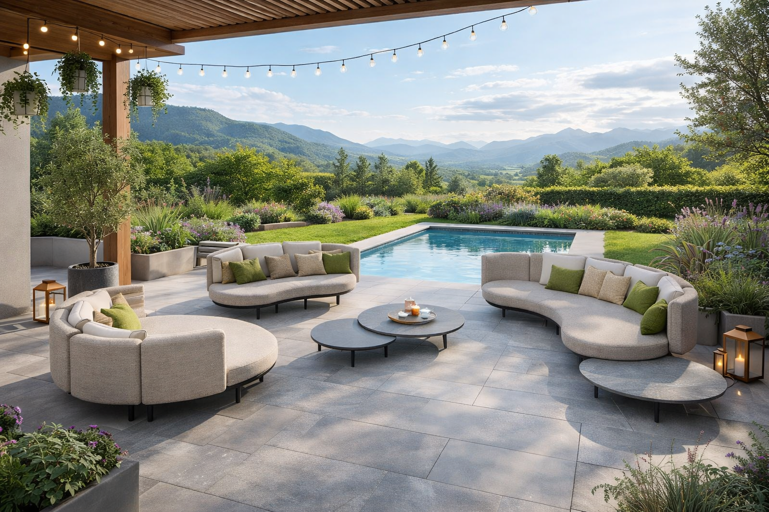 Ensemble de canapés d'extérieur modulaires de luxe Luna Curve – Collection Salon de jardin et de terrasse