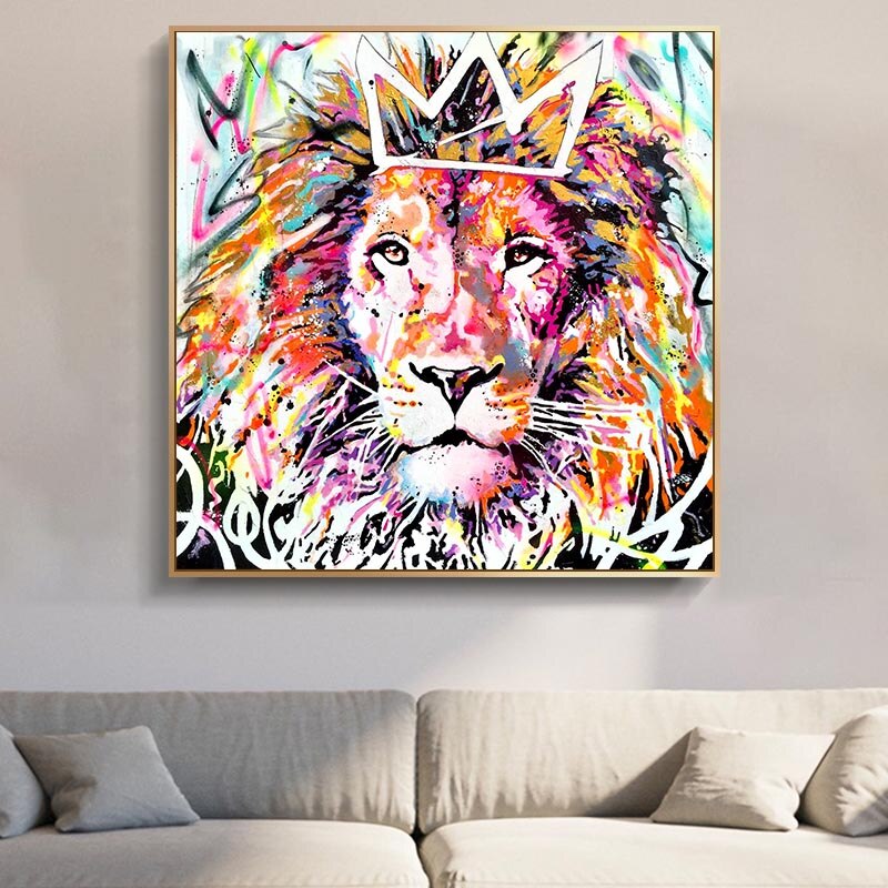 Verander je ruimte in een kunstgalerie met Animals Graffiti Lion With Crown Canvas Wanddecoratie, waar elk stuk diepte en charme toevoegt.