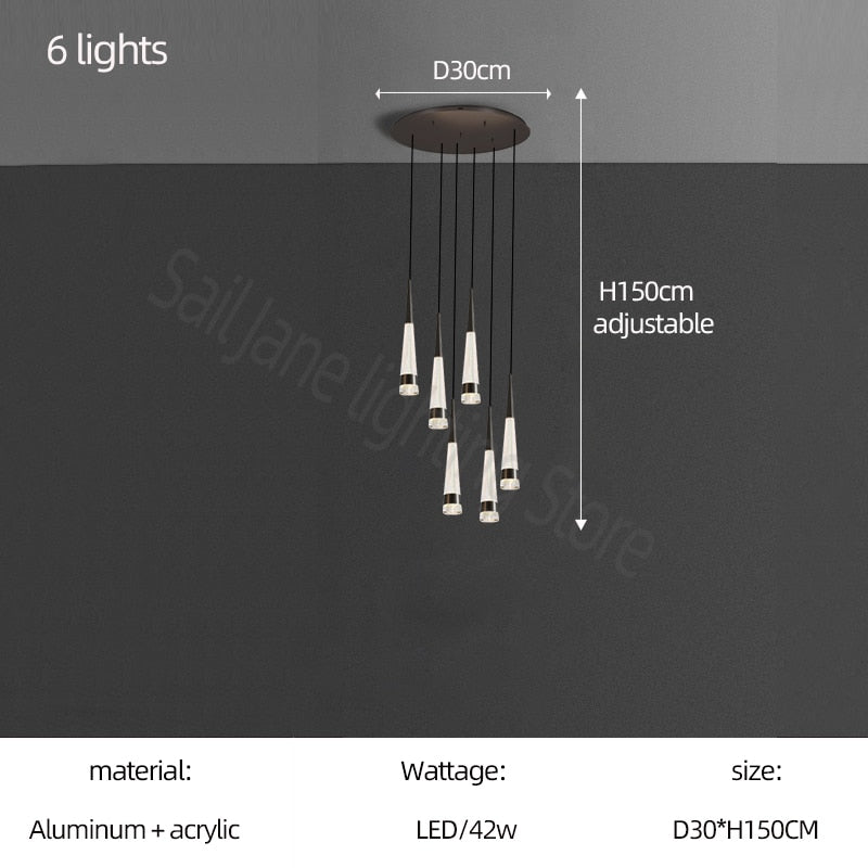 Eleva il tuo spazio con il Lampadario Scala a Coni a Spirale – una soluzione di illuminazione elegante e moderna progettata per interni contemporanei. Con la sua finitura elettroplaccata e la forma conica minimalista, questo lampadario LED è perfetto per soffitti a doppia altezza, scale e ingressi di hotel.