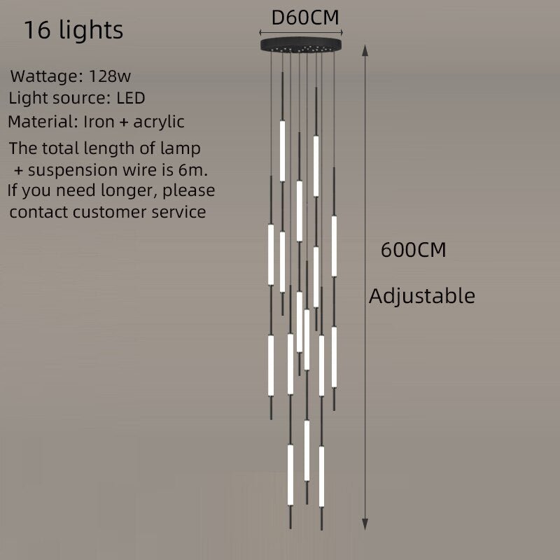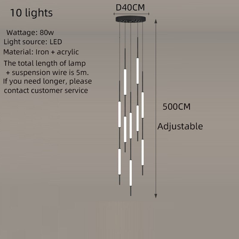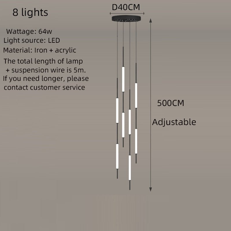 Upgrade your interior with the Acrylic Tubes Stairs Chandelier – where minimalist design meets high performance lighting for stunning vertical spaces.