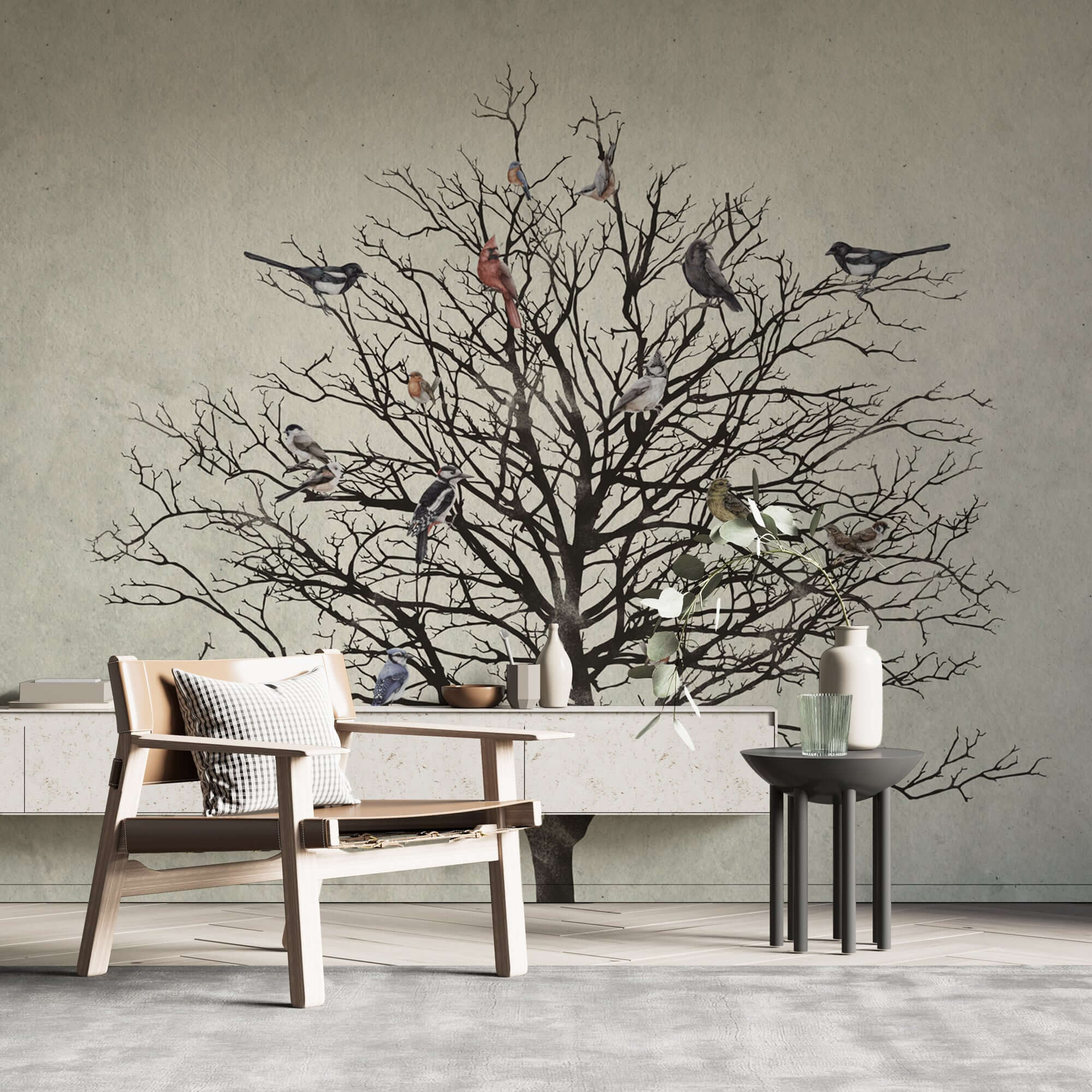 Преобразите любую комнату без усилий с помощьюЗимние птицы на дереве - настенная фреска - украсьте ваше пространство Индивидуально изготовленное под ваш интерьер, это идеальное сочетание стиля, качества и удобства.