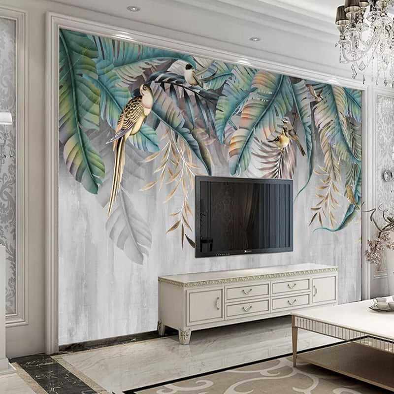 Преобразите любую комнату без усилий с помощью Симфония природы: обои с листьями растений и птицамиНастроенный под ваше пространство, он представляет собой идеальное сочетание стиля, качества и удобства.