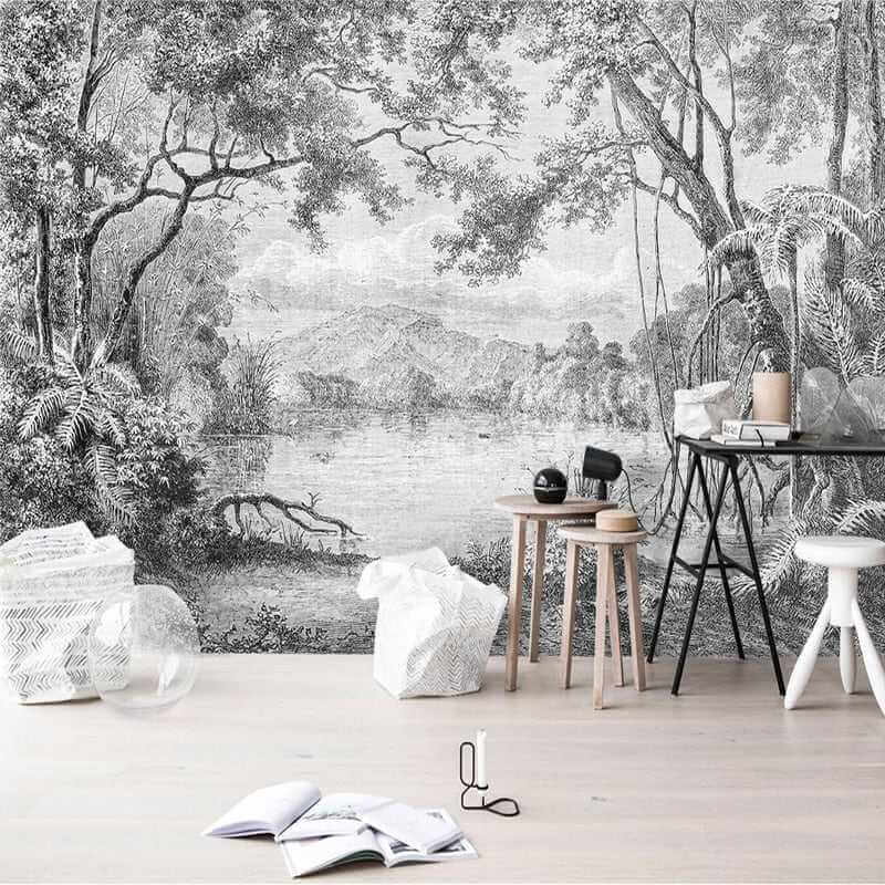 Преобразите любую комнату без усилий с помощьюШепчущие тени: черно-белые обои с лесом Изготовлено на заказ с учетом вашего пространства, это идеальное сочетание стиля, качества и удобства.