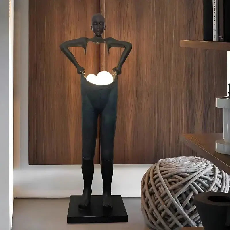 Универсальность: Будь то гостиная, спальня или кабинет, эта напольная лампа с фигурой человека придаёт любому помещению ощущение художественности и изысканности.