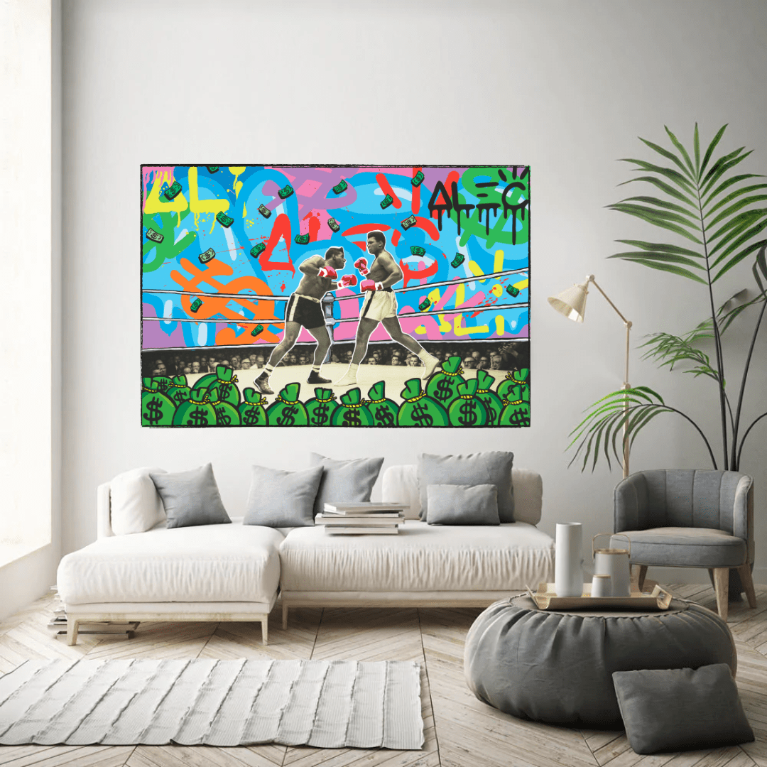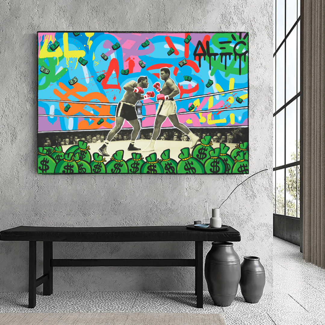 Преобразите ваше пространство в художественную галерею с Мухаммед Али Боксирующий Король на Ринге от Алека Холстовое Искусство, где каждая деталь добавляет глубину и очарование.