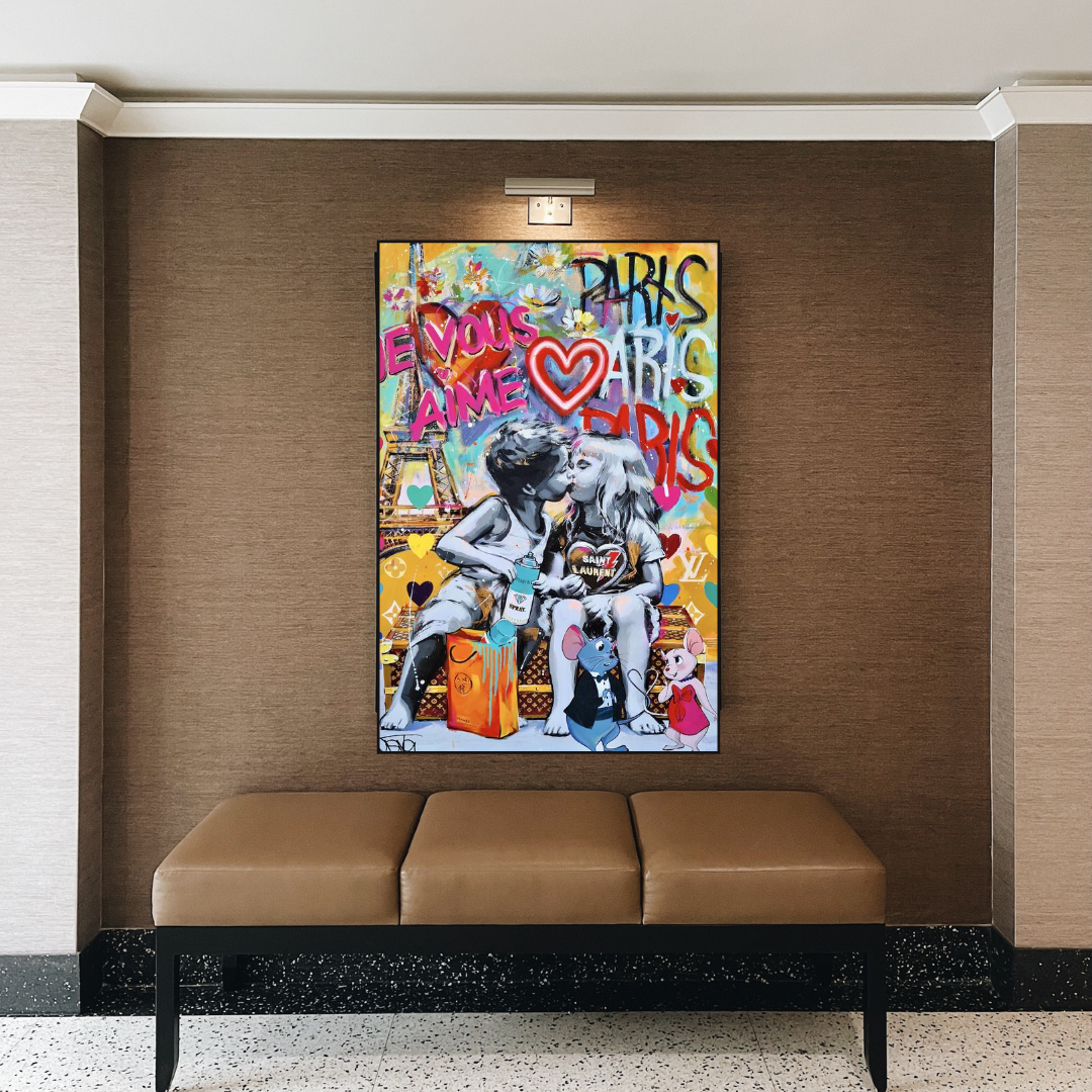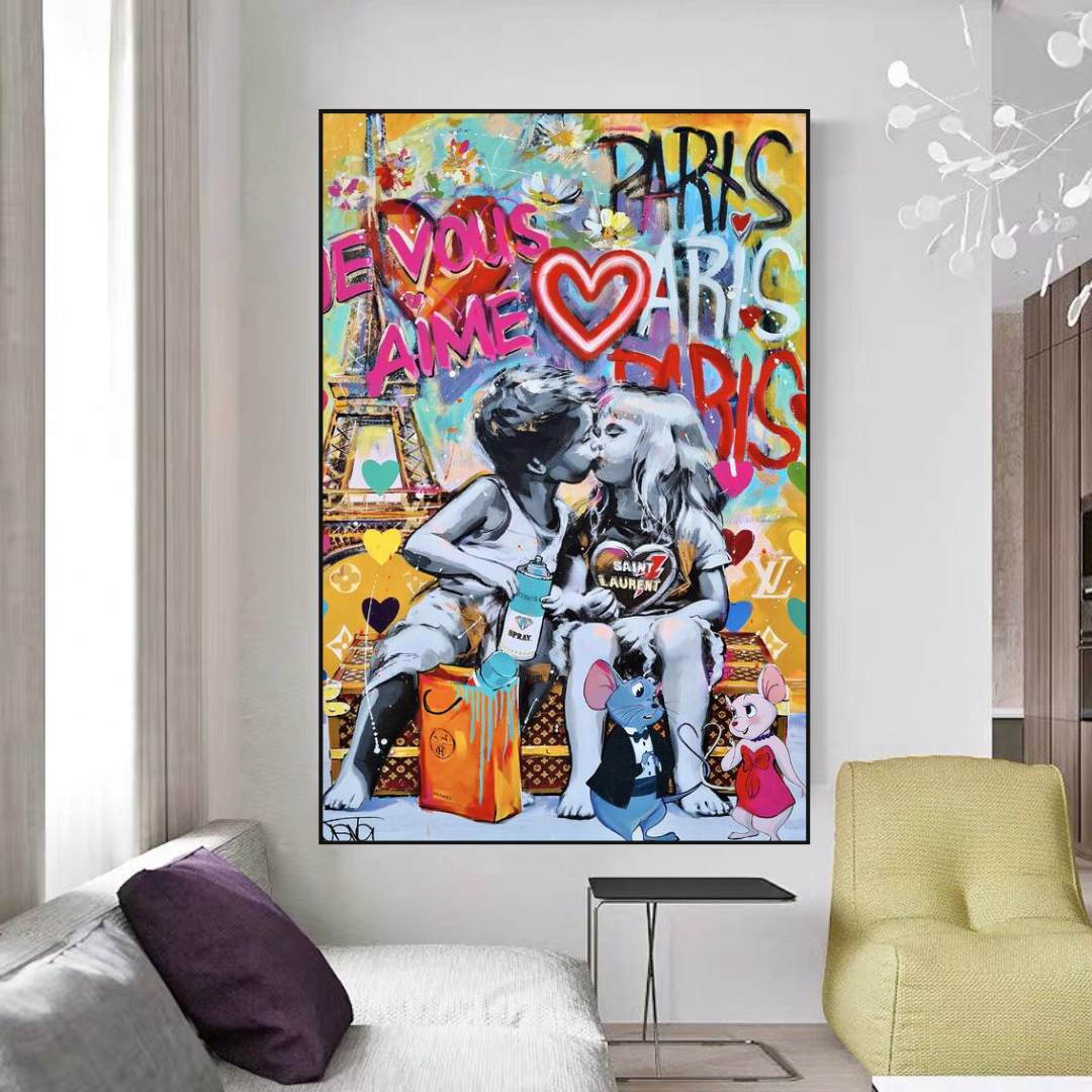 Преобразите ваше пространство в художественную галерею с Бэнкси Я Тебя Люблю Холст Настенное Искусство - Добавьте Ноту Уличного Искусства, где каждая деталь добавляет глубину и очарование.