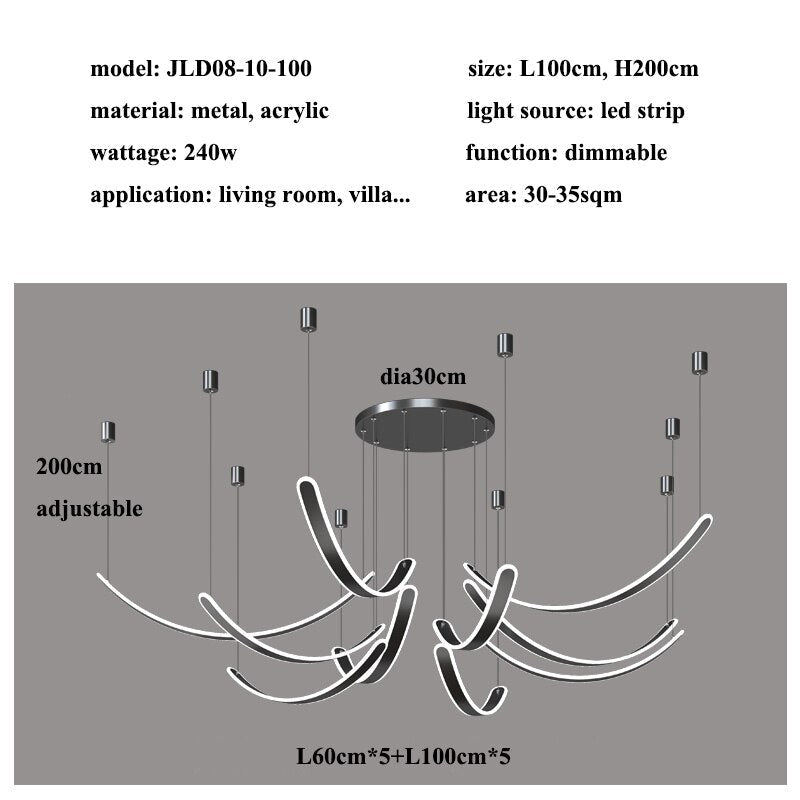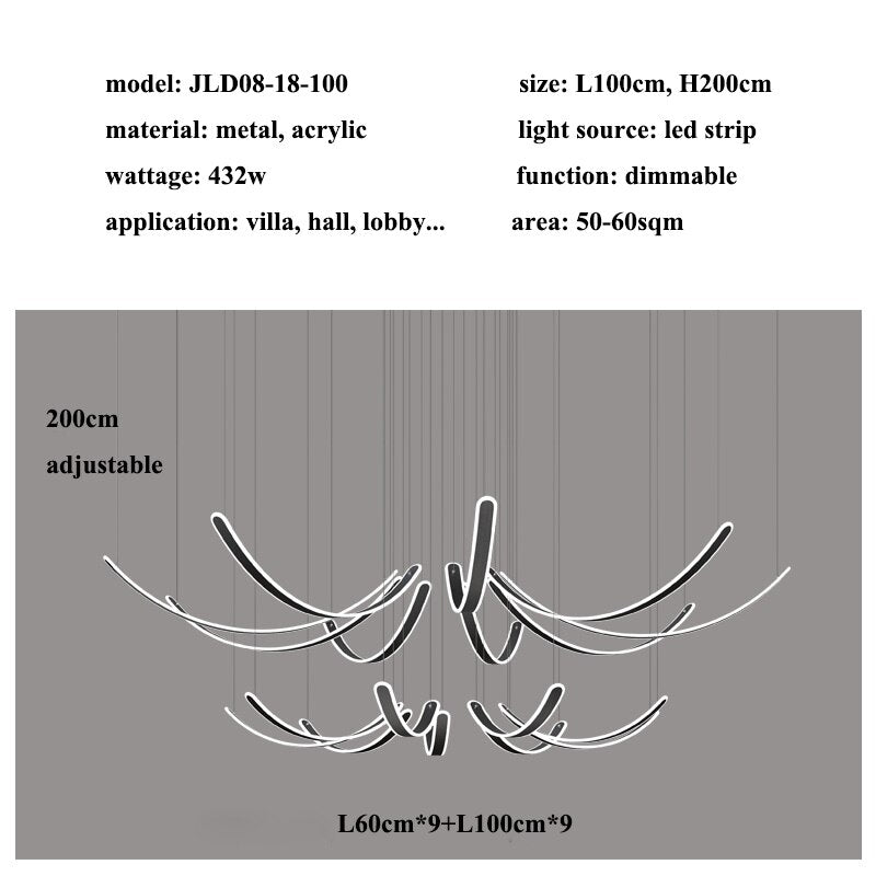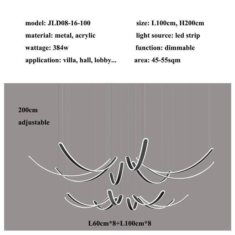 Представляем изысканную люстру 'Black' из акриловых ремней отGrafffitiWallArts Изысканные светильники. Эта потрясающая люстра создана, чтобы подчеркнуть атмосферу любого пространства своим элегантным и современным дизайном. Доступна в различных стилях, включая 2 лампы (40 см, 60 см, 80 см, 100 см), 6 ламп (40 см, 60 см), 8 ламп (80 см, 100 см), 10 ламп (100 см), 12 ламп (100 см), 14 ламп (100 см), 16 ламп (100 см) и 18 ламп (100 см). Эта люстра предлагает универсальные варианты, подходящие для любого размера комнаты и интерьера. Кроме того, цвет свечения легко регулируется и затемняется с помощью пульта дистанционного управления, что позволяет создать идеальную атмосферу для любого случая. Раскройте свою креативность и добавьте нотку роскоши в ваше пространство с люстрой 'Black' Acrylic Belts от GrafffitiWallArtsЭлегантные огни.