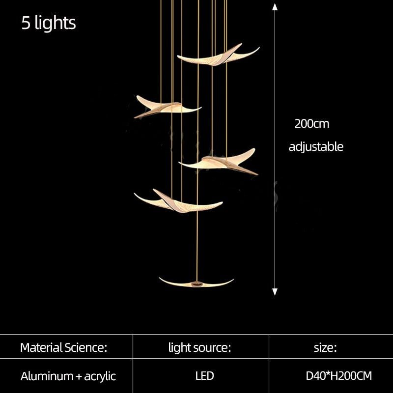 Люстра-подвеска для лестницы с изображением чайки – элегантный светодиодный светильник с художественным дизайном