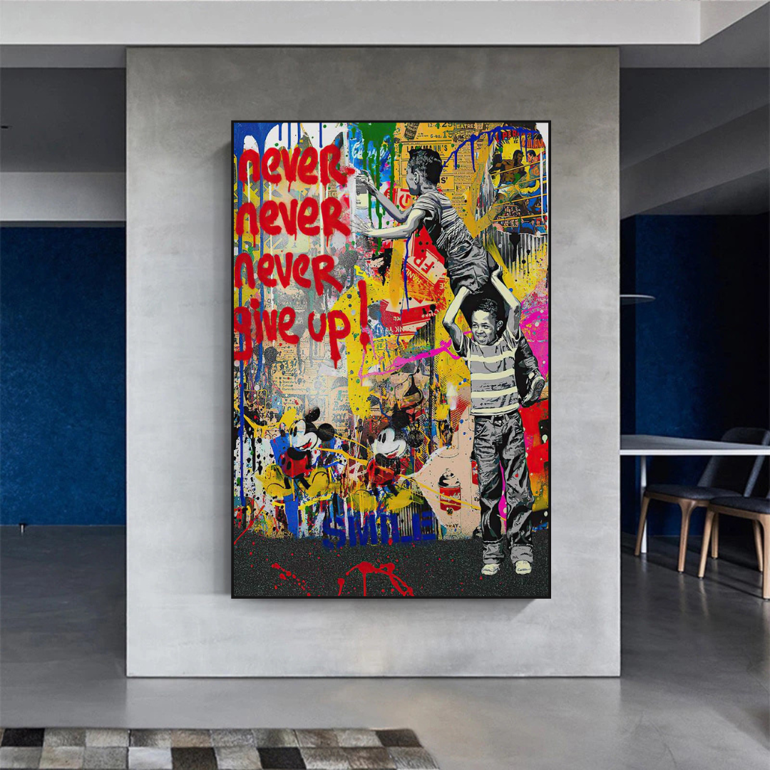 Представляем вам нашу исключительную Бэнкси Никогда Не Сдавайся: Вдохновляющее Уличное Искусство на Холсте для Декора Стен, предлагая захватывающие постеры на холсте, которые наполнят вашу жизнь и пространство индивидуальностью. Поднимите уровень ваших стен с: